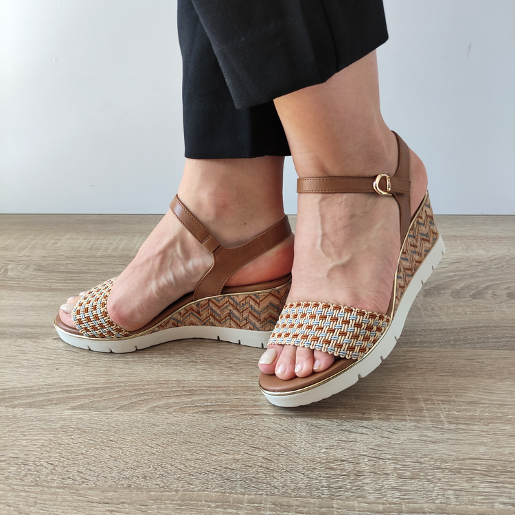 Îți prezentăm sandalele casual pentru damă Tamaris 28371-42, realizate din combinația de textil și piele ecologică de înaltă calitate, ideale pentru a aduce un plus de eleganță ținutelor tale de vară. Cu un design în nuanțele rafinate de coniac și comb, aceste sandale oferă un look modern și sofisticat. Sistemul de închidere cu cataramă asigură o fixare sigură și confortabilă, în timp ce talpa înaltă de 14 centimetri îți oferă un suport excelent.