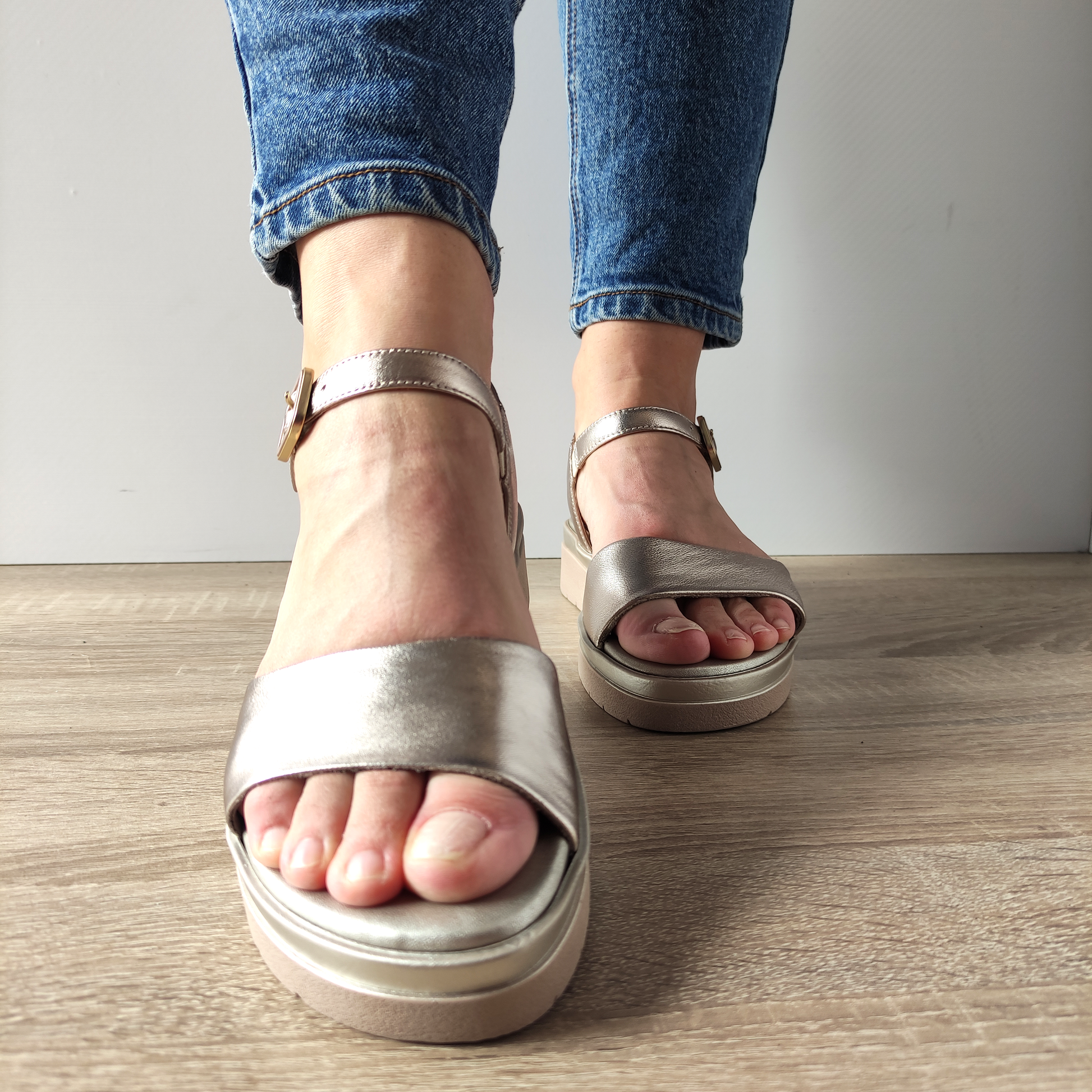 Material exterior: Piele naturală Înălțimea tălpii: 10.5 centimetri Grosimea tălpii: 4.5 cm Tip: Sandale casual Tip închidere: Cataramă Culoare: Lt gold Cod produs: Tamaris 88708-42