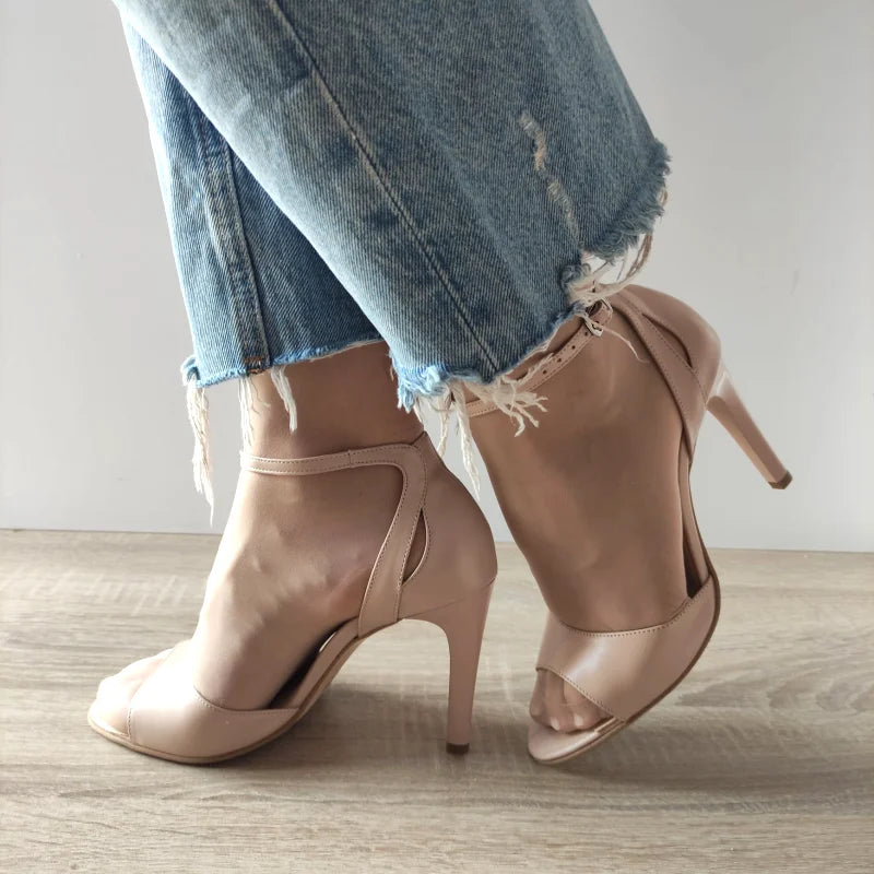 Sandale elegante de damă Antonio, confecționate din piele naturală fină, în nuanța rafinată nude ivoar, ideală pentru asortare cu ținute deschise sau pastel. Designul cu barete delicate și decupaje laterale evidențiază elegant linia piciorului, iar tocul subțire de 10 cm alungește silueta fără a compromite stabilitatea. Se închid cu cataramă reglabilă, pentru susținere optimă. Un model feminin și rafinat, perfect pentru evenimente speciale sau seri elegante.