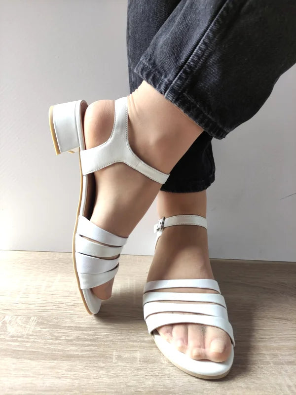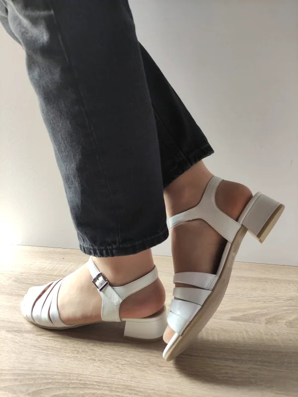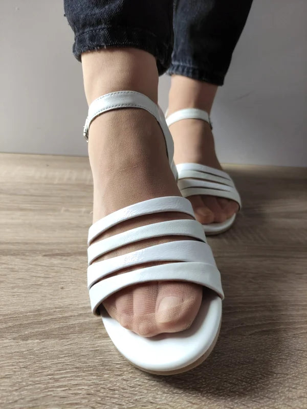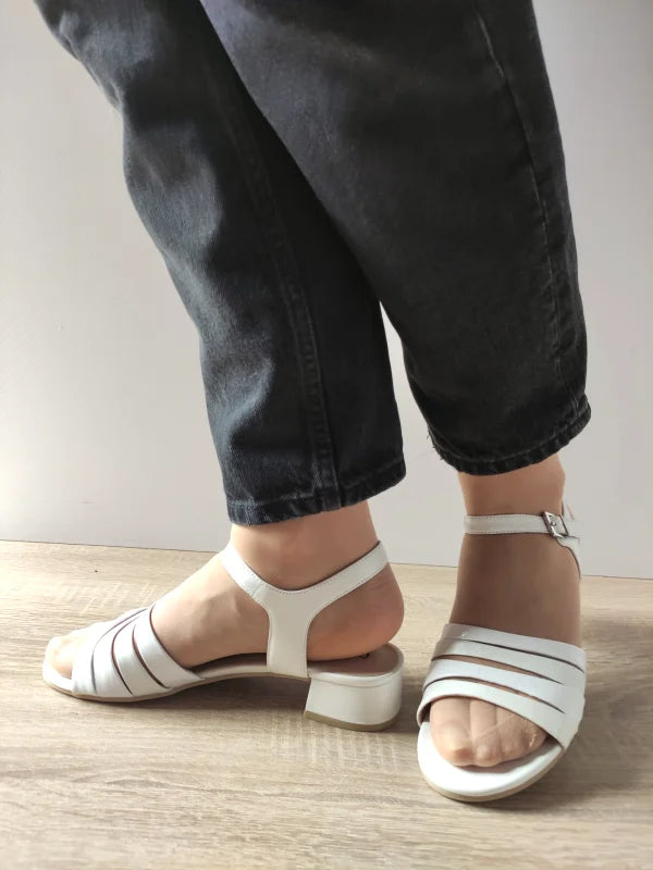 Designul rafinat cu barete subțiri și sistem de închidere cu velcro (scai) facilitează ajustarea rapidă și fixarea comodă pe picior. Culoarea albă clasică adaugă o notă fresh și versatilă, ușor de asortat cu diverse outfituri.