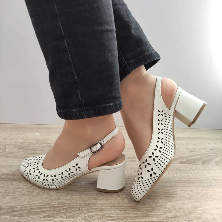 Design: Sandale elegante cu detalii perforate, ce adaugă un plus de feminitate și rafinament.