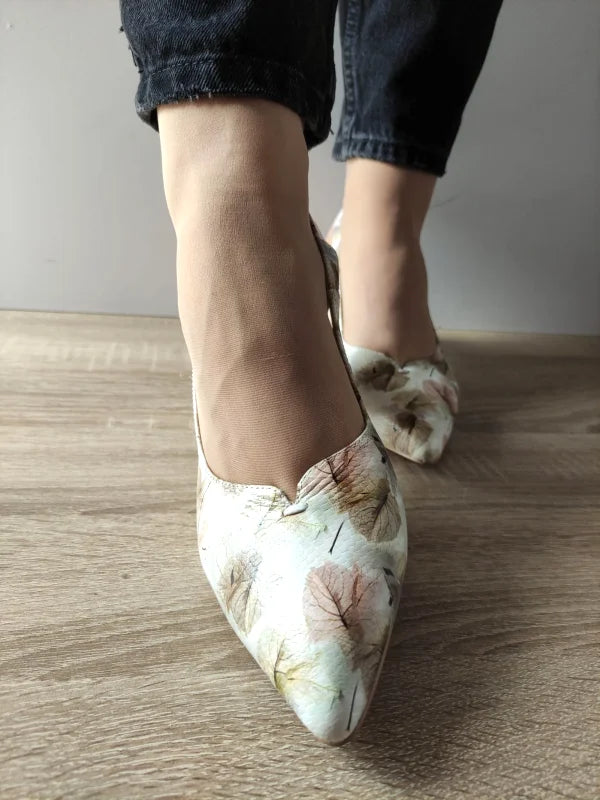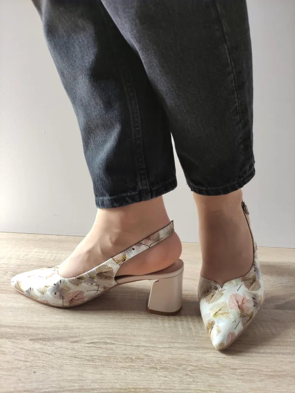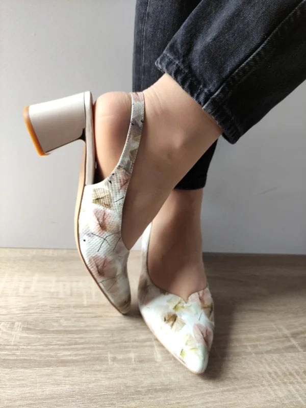 Designul cu vârf ascuțit și imprimeul floral subtil adaugă un aer elegant și fresh, potrivit atât pentru evenimente speciale, cât și pentru ocazii casual-chic.