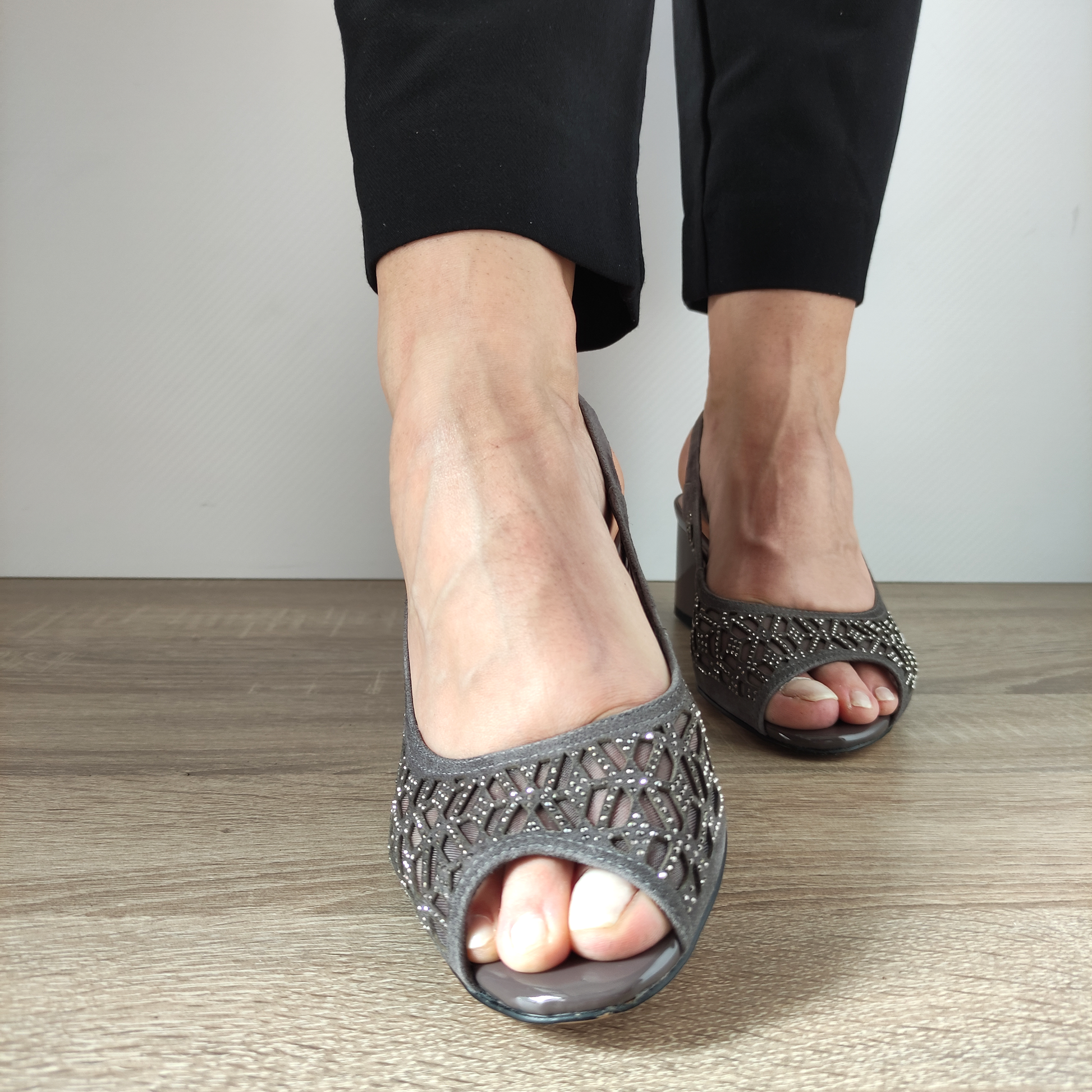 Îți prezentăm sandalele elegante pentru damă de la Epica, modelul 40082C 14-Z. Aceste sandale sunt confecționate din piele naturală întoarsă de culoare gri velur, oferind un aspect sofisticat și modern. Tocul gros de 6,5 cm asigură confort și stabilitate pe durata întregii zile, în timp ce înălțimea totală a pantofului de 11 cm conferă eleganță și alungire siluetei. Designul cu perforații și detalii delicate adaugă un plus de rafinament, făcând aceste sandale potrivite pentru evenimente speciale. Sistemul de închidere cu cataramă asigură o fixare sigură și confortabilă.