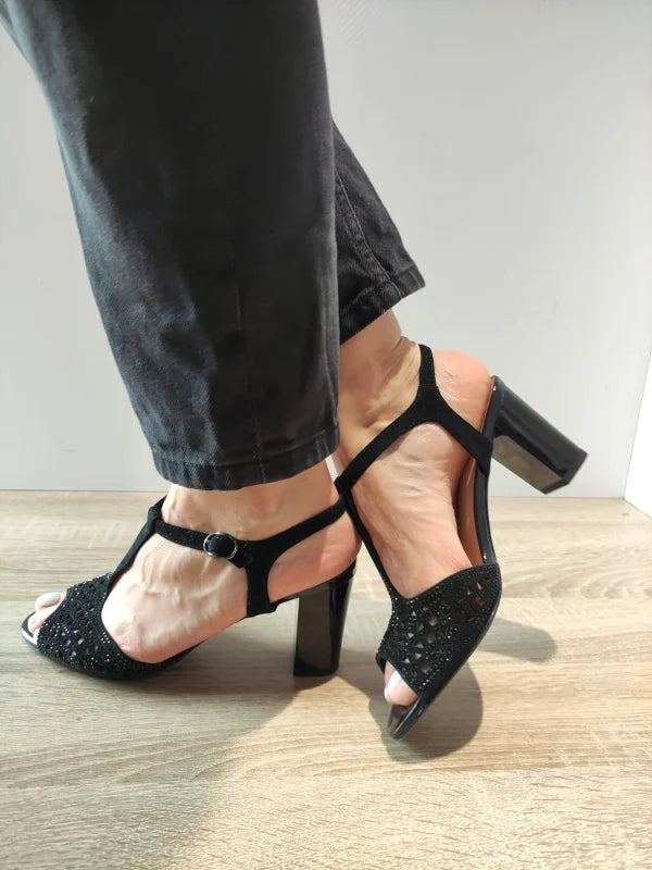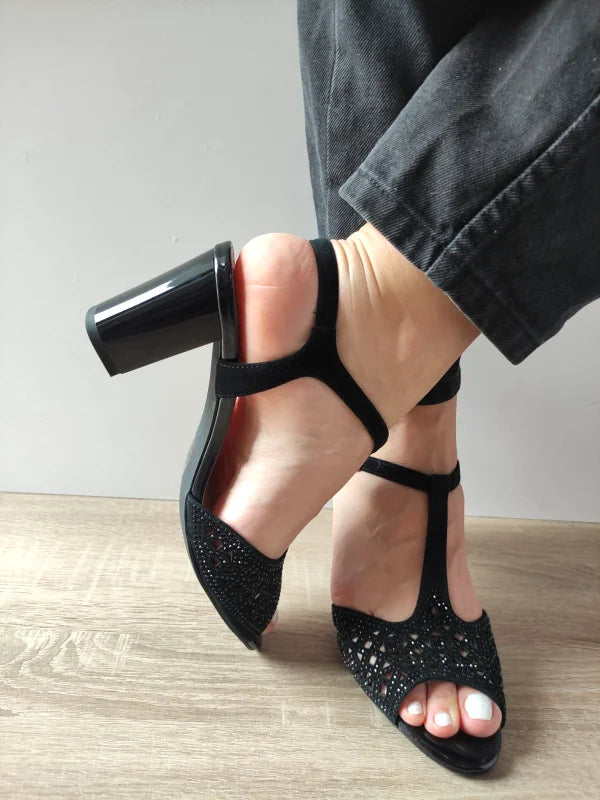 O alegere rafinată pentru ținutele de seară sau ocaziile speciale, aceste sandale elegante de la Epica impresionează prin designul sofisticat și detaliile delicate. Confecționate din piele naturală întoarsă, modelul prezintă decupaje fine și inserții elegante, oferind un aspect feminin și distins. Tocul gros de 8.2 cm adaugă înălțime și stabilitate, iar închiderea cu cataramă laterală permite reglarea ideală pe picior.