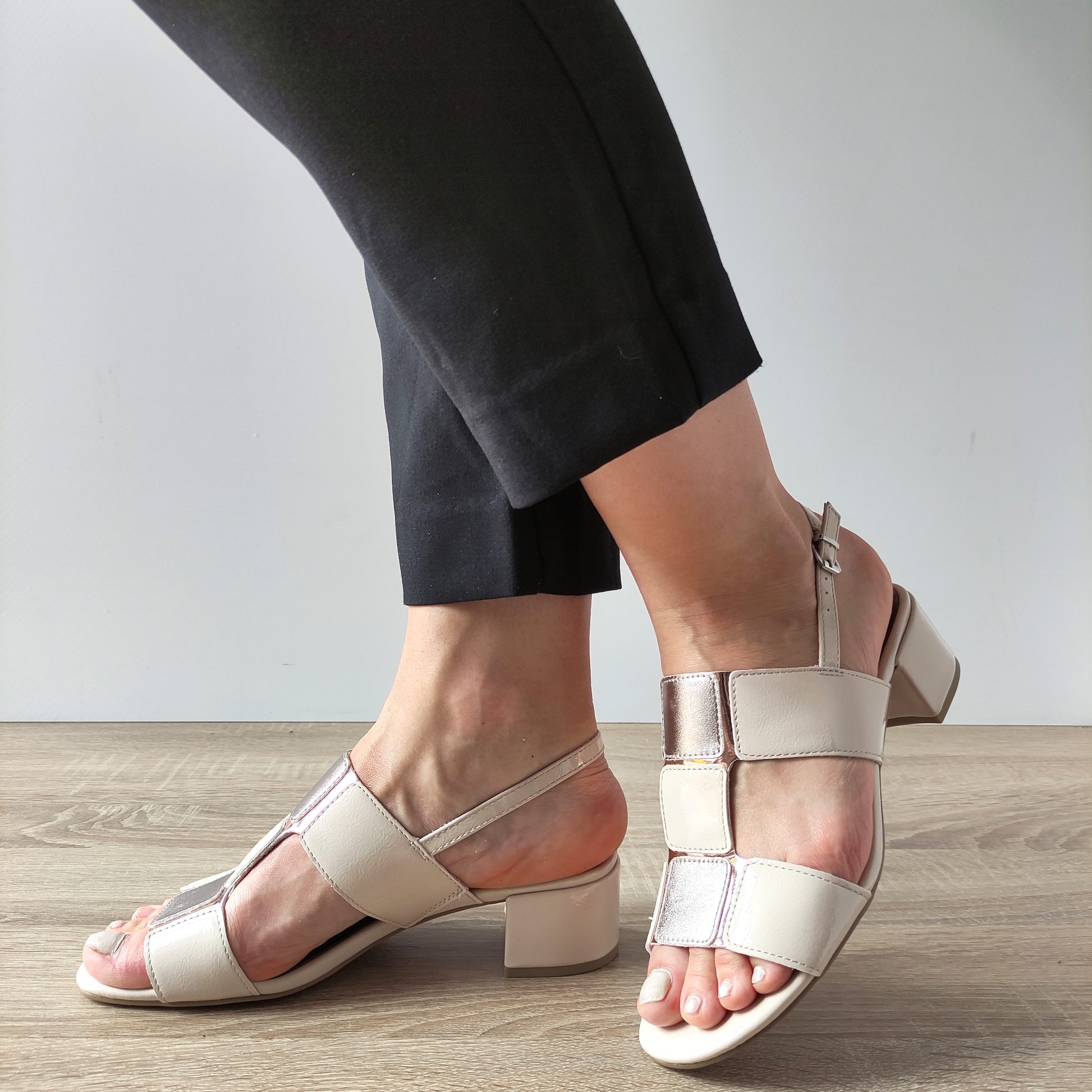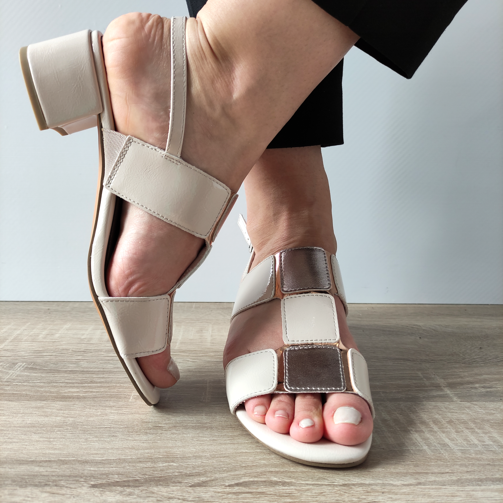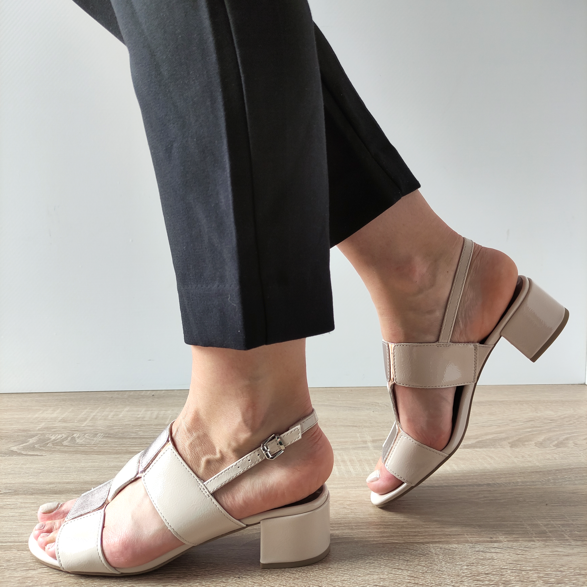 Material exterior: Piele ecologică Tip închidere: Cataramă Tip: Sandale elegante Gen: Damă Culoare: Nude lac + auriu Grosimea tălpii: 5 centimetri Înălțimea totală a pantofului: 11 centimetri Cod produs: Marco Tozzi 28204-42