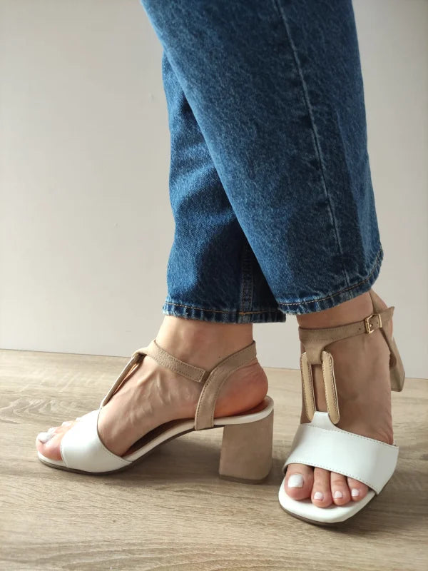 Eleganță discretă și rafinament contemporan – aceste sandale Marco Tozzi îmbină nuanțele de alb, bej și accente fine aurii pentru un look versatil și feminin. Tocul gros de 7.5 cm oferă stabilitate, iar designul cu barete fine și tăieturi moderne subliniază cu delicatețe linia piciorului.