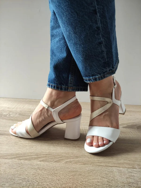 Design rafinat și accente glam, aceste sandale Marco Tozzi atrag atenția prin combinația elegantă de alb și auriu, perfectă pentru ținute de vară sofisticate. Tocul gros de 8.5 cm oferă stabilitate și eleganță, iar finisajul lucios adaugă un plus de stil.