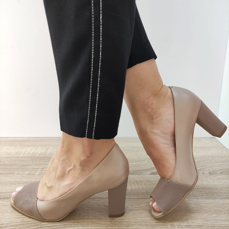 Slip-on designul face ca încălțarea și scoaterea să fie ușoară și convenabilă, fără a fi nevoie de șireturi sau alte sisteme de închidere. Tocul gros de 7,5 centimetri adaugă înălțime și subliniază eleganța pantofilor. Înălțimea totală a pantofului este de 14 centimetri, ceea ce îi face potriviți pentru o varietate de ocazii speciale.