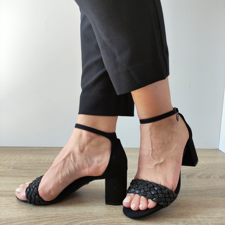Sandalele au un toc de 6.5 centimetri, ideal pentru a oferi un plus de înălțime și grație. Sistemul de închidere cu cataramă asigură o potrivire perfectă și confortabilă.