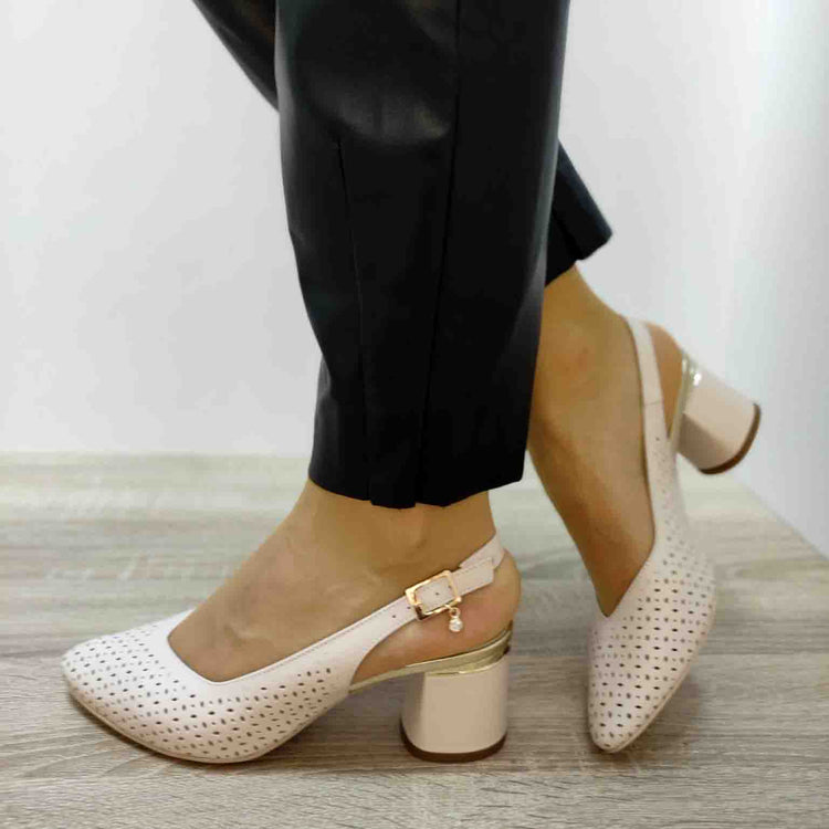Bucură-te de confortul și calitatea materialelor premium ale acestor sandale elegante. Pielea naturală conferă durabilitate și respirabilitate, asigurându-ți confortul necesar pe durata întregii zile. Tocul de 6,5 centimetri oferă o înălțime ideală pentru a-ți pune în evidență feminitatea și stilul personal.