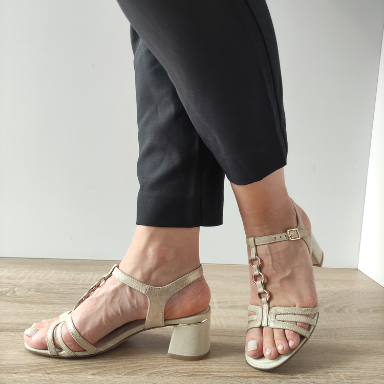 Îți prezentăm sandalele elegante pentru damă de la Tamaris, modelul 28006-42, confecționate din piele naturală de înaltă calitate. Aceste sandale vin într-o nuanță rafinată de champagne, ideale pentru a adăuga un plus de eleganță ținutelor tale de vară.