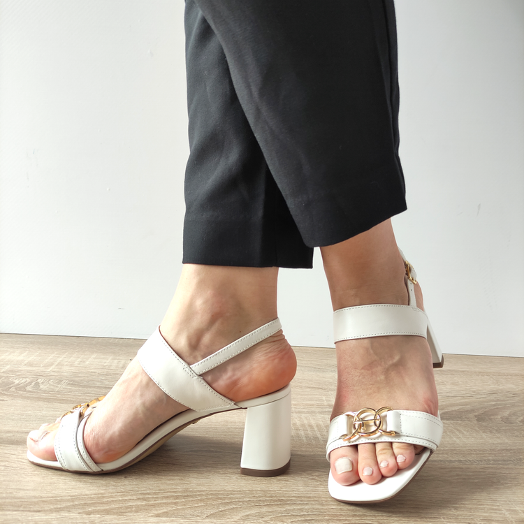 Sandalele au un toc de 7.7 centimetri, asigurând eleganță și confort pe durata întregii zile. Sistemul de închidere cu cataramă permite o ajustare perfectă pentru o fixare sigură.